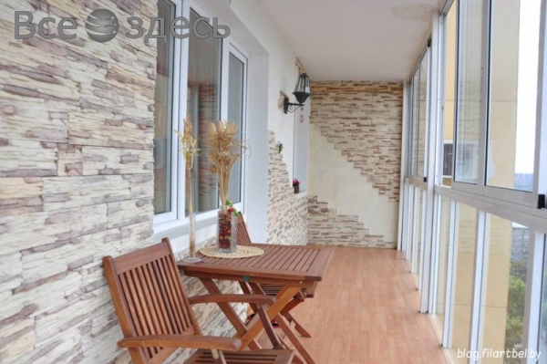 Балкон и лоджию как правило оформляют в общей стилистике квартиры. Если же вы решили оставить их за отдельной дверью, то уместным будет купить тиковую мебель. В удобных креслах можно будет спокойно почитать книгу или помечтать, на небольшом столе хорошо поместятся газеты, журналы, книги или ноутбук. Добавьте к этому декоративные светильники, салфетки или пледы, подушки и цветущие растения, чтобы посреди шума большого города у вас получился оазис уюта и умиротворения. Если заранее озаботиться утеплением лоджии или балкона, то эта небольшая комната будет функциональной круглый год.