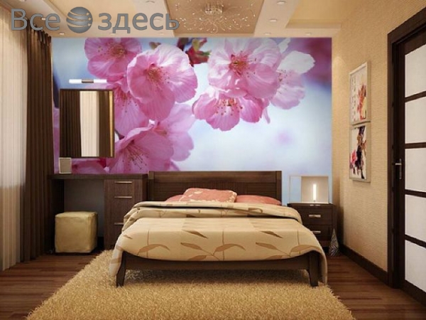 Фотообои для спальни. (Фото в интерьере для маленьких комнат)