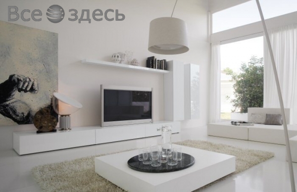 Белая мебель ассоциируется с богатыми интерьерами ампира и ренессанса, холодностью скандинавских домов и простотой прованса. Она гармонично вписывается в любой интерьер, привнося в него легкость и изысканность. Издавна такой цвет считался олицетворением праздника и чистоты, величия и власти. Именно поэтому сегодня многие для оформления гостиной используют мебель белого цвета: диваны и кресла, которые добавят шик даже в самый простой интерьер, журнальные столики, полки и шкафчики белого цвета. Дизайн гостиной, выдержанный в белом цвете - эффектный и спокойный.