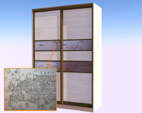 Наноситься рисунок на поверхность зеркала может при помощи матирования пескоструйной машиной или же получением четкого изображения на матовом фоне. Рисунок на такой тип дверей наносится с помощью укрепления прозрачной пленкой, выполняющей роль защиты изображения. При этом само зеркало может быть обыкновенным, матированным или тонированным. Дизайнеры советуют не выполнять рисунок на всю площадь двери, а лишь в какой-то отдельной его части – тогда можно реализовать идею и сделать свой предмет мебели необычным, но не вычурным. Чтобы органично вписать шкаф в существующий дизайн помещения, специалисты помогут подобрать цветовую гамму, стиль росписи и ручки разных форм. Так стандартный предмет с применением рисунка на зеркале превращается в часть стилизованного французского будуара или традиционного японского чайного домика.