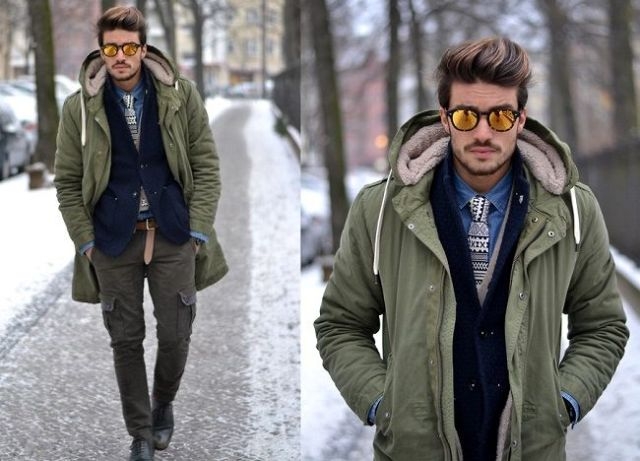 В продаже представлены мужские парки черного, коричневого, серого, синего, зеленого, желтого, красного цвета и др. Классикой считается болотный цвет. Есть модели с принтами, кожаными вставками, аппликацией, вышивкой. Дизайнеры предлагают мужчинам парки таких видов: