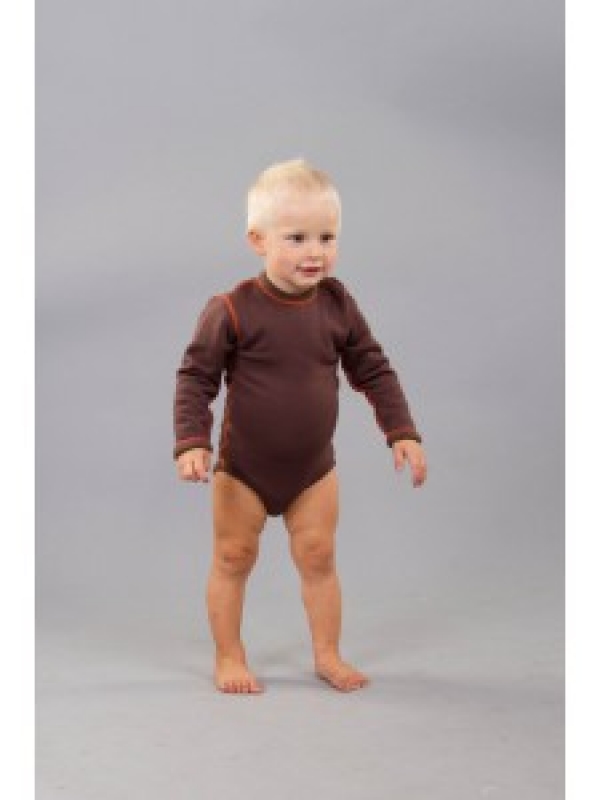Также предлагается здесь и термобельё для детей. В частности, теплый, мягкий, уютный бодик, сделанный из натуральной шерсти мериносов Norveg Soft (Merino Wool - 100%). Отметим, что толщина волоса таких новозеландских и австралийских овец равна всего 17,5 мкрн (а толщина человеческого волоса составляет 80 мкрн)! Эта шерсть оберегает от переохлаждения, перегрева, создает комфортный микроклимат. Носить такое белье можно на протяжении всего года. Оно подходит даже новорожденных, детей со склонностью к аллергии. Отличается модель и круглой горловиной, которая хорошо защитит детскую шейку от переохлаждения. А еще она очень эластичная, так что боди легко будет одевать ребенку. Оптимально использовать эту вещь при температуре в пределах +20 - -15°C.
