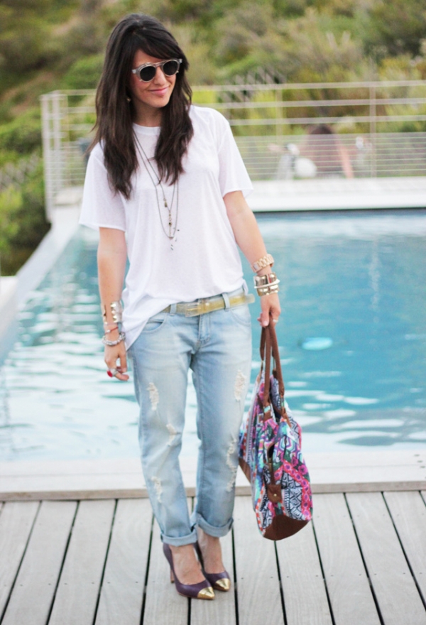 Лучше всего покупать качественные вещи, ведь любимая футболка быстро износится, если она выполнена из некачественной ткани. В настоящее время все еще актуальны футболки с интересными необычными принтами. Лучшего всего отдавать предпочтение футболкам свободного кроя. Отлично будет смотреться футболка или майка с остроумным выражением. В 2015 году также есть еще несколько трендов, о которых стоит узнать модницам. Популярными остаются футболки с контрастным воротничком. Такую вещь можно отнести к классике, ведь она отлично сочетается со строгой юбкой. Подобный комплект станет оптимальным для офиса. Все еще в тренды футболки с отделкой. Например, воротничек может быть украшен бусинами или камнями. Для любого образа подойдут футболки из шелк. Они смотрятся очень нежно и легко. Для вечеринки как нельзя кстати придутся футболки, отделанные пайетками. Конечно же не стоит забывать о правильном сочетании вещей.