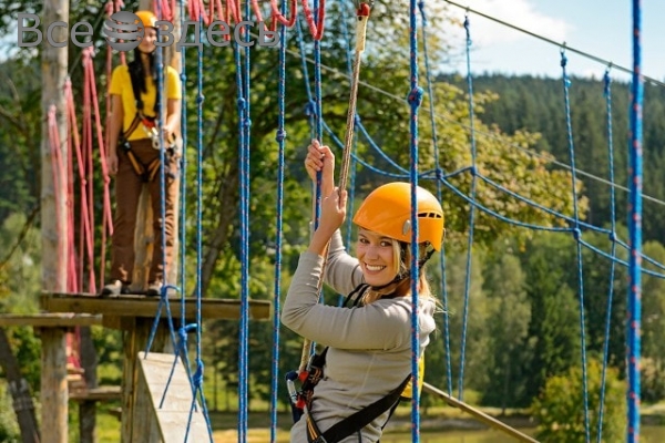 Взрослые, имеющие вес более ста десяти килограмм, к прохождению трассы не допускаются, хотя конструкции очень прочные. Поклажа оставляется внизу, ведь движения участников ничто не должно сковывать. Не допускаются на трассу беременные женщины, люди, страдающие легочными, сердечными заболеваниями (фото 7).