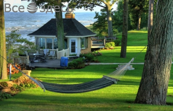 Относительно мебели вариантов множество. Например, шезлонги с яркими матрасами, гамаки или даже раскладная кровать! К слову, последняя ещё и станет комфортным спасением, если кто-либо из гостей решит остаться на ночь, а лишнего спального места нет. А на шезлонгах, конечно же, особо удобно загорать (или взять с собой на пляж, если в дачном посёлке есть речка).