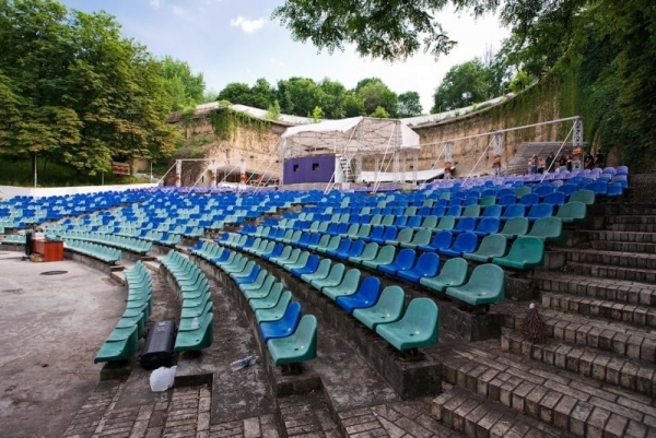 Это место не указано ни на одном туристическом маршруте. Подземелья, хранящие много тайн. Амфитеатр, в котором в середине прошлого века показывали новинки мирового кино. Все это - киевский "Зеленый театр" под открытым небом. Находится он почти в центре города на территории парка "Аскольдова могила". Построен в 1949-м году на месте крепостного сооружения, датированного 19-м веком. Элементом театра является казематная стена бывшей военной постройки.
