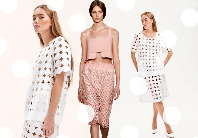 Перфорация - это фигурный прорезной рисунок, выполненный при помощи лазерного луча. Раньше она применялась для сумок и обуви. Сегодня перфорацией модно украшать одежду: женские платья и юбки, туники, жилеты, пиджаки, брюки и т.д. Появилась данная техника в 70-х годах 20-го века и тогда она называлась гильошированием. Мастера использовали электрический инструмент с длинной тонкой иглой, который напоминал обычный паяльник и выполняли на ткани кружевную отделку. Для этого сверху на стекло клали листок с рисунком и ткань, а снизу ставили лампу, которой подсвечивали узор. Далее иголкой выжигали в ткани отверстия.
