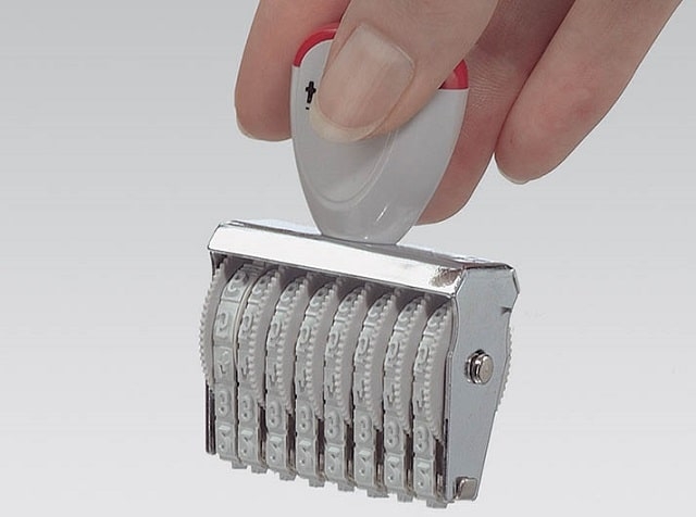Нумератор представляет собой небольшой прибор в виде штампа, который наносит номер. Может отпечатывать, как порядковые, так и произвольные номера.