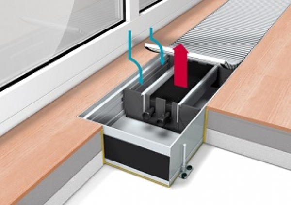 Так, этот внутрипольный конвектор, отличается применением принципа естественной воздушной конвекции. Т. е. теплый восходящий поток выступает экраном для холодного воздуха, а также предотвращает запотевание либо образование на стекле конденсата. Конвекторы от Mohlenhoff WSK, которые устанавливают в помещении, преимущественно играют роль дополнительных источников тепла, а главную (отопительную) функцию выполняют в это время иные приборы отопления (к примеру, радиаторы или «теплый пол»). Хотя в межсезонье, а также применимо к небольшим помещениям, эти конвекторы могут полноценно заменять отопление. Их принцип работы достаточно прост: не нагретый воздух попадает в конвектор (точнее - в лоток), а оттуда, уже будучи теплым, благодаря водяному теплообменнику, направляется вверх.
