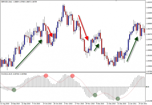 При всех достоинствах, у индикатора MACD имеются и некоторые недостатки, которые обязательно следует учесть при выборе его для зарабатывания денег на Форексе. Во-первых, при больших временных периодах велика вероятность несвоевременного прихода сигнала. Во-вторых, при малых временных промежутках значительным будет число ложных сигналом. В-третьих, такой инструмент не подходит для игры против тренда. И наконец, для выявления сильного тренда с помощью MACD на длительном интервале необходим солидный опыт в трейдинге.