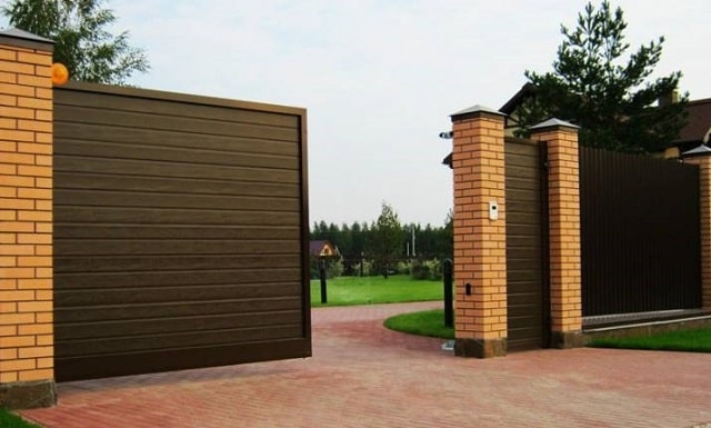 Что касается недостатков откатных конструкций, то они сводятся к более сложному монтажу (для надежности и устойчивости ворот нужно будет бетонировать столбы) и дорогой фурнитуре. Откат створок требует наличия свободного пространства вдоль забора: примерно 4-8 м.
