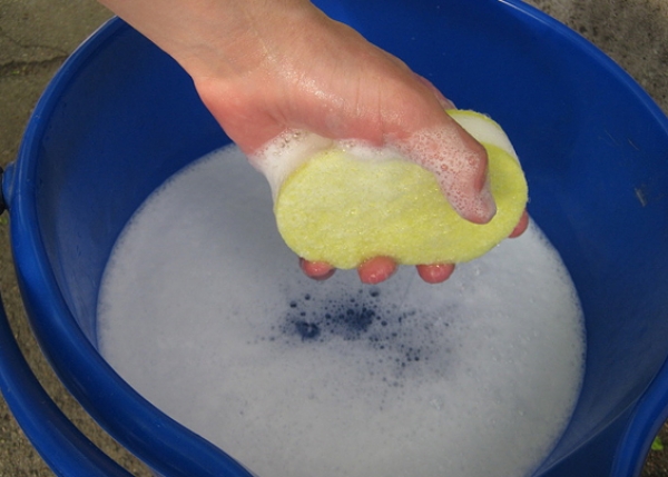 Для того, чтобы помыть обои необходимо использовать специальное моющее средство или жидкий порошок, так как после обычного порошка останутся белые следы на стенах, которые достаточно тяжело смыть. Моющий раствор делают в теплой воде, не сильно концентрированный, чтобы было несложно справляться с образовавшейся пеной. В воду можно добавлять жидкие средства для посуды или пола. Окрашенные обои лучше мыть просто водой, так как химически активные вещества могут разъесть краску.