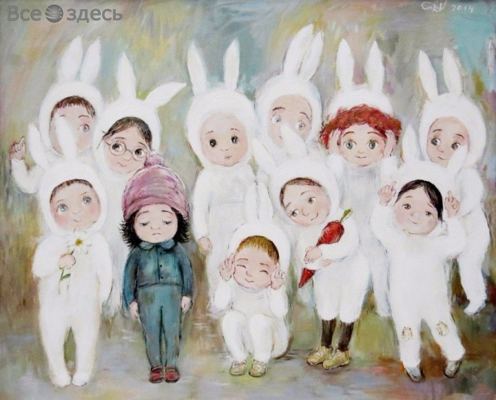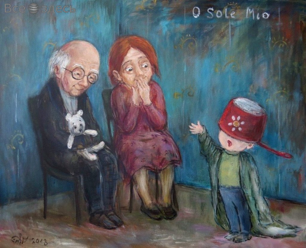 Сюжеты ее картин знакомы каждому, чье детство проходило в уютном доме бабушки и дедушки. Прятки за комодом, грусть за полюбившимся воздушным шариком, щемящая гордость артиста, нарядившегося в простыню и выступающего перед своими собственными зрителями. Пронзительная грусть и в то же время умилительные воспоминания просыпаются в душе при виде этих замечательных картин. Удивительно, как морщинками возле глаз, разлетом удивленных бровей на маленьких лицах, художнице удалось все это нам с вами передать.