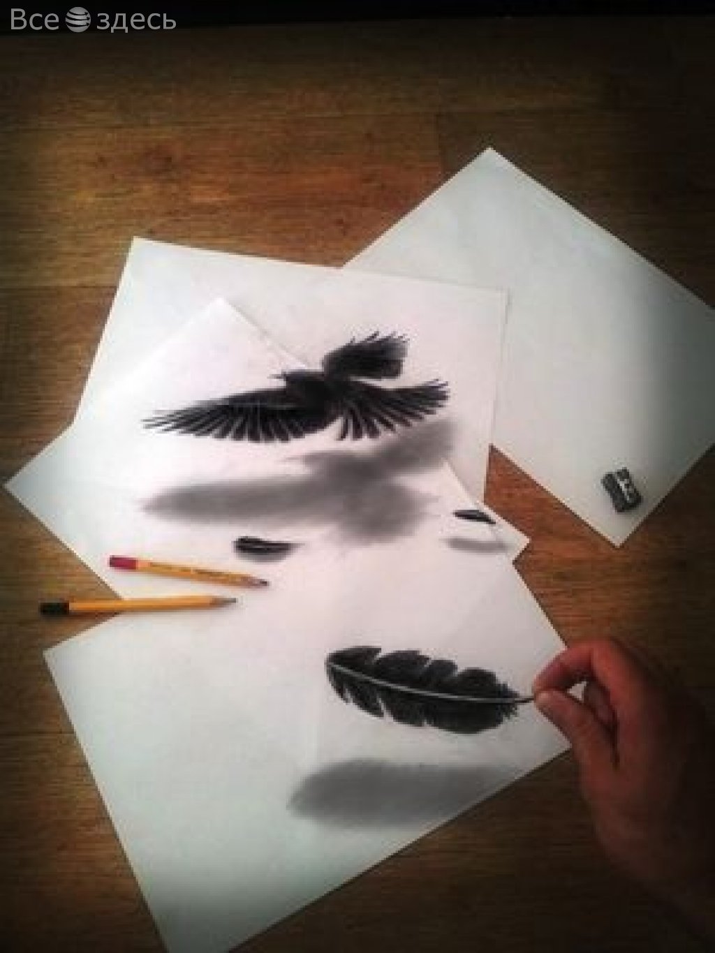 Этот художник создает довольно интересные иллюзорные работы. Ramon Bruin вас заставит сомневаться, что же является реальностью, ну а что на самом деле лишь умная иллюстрация. Талантливый художник своей умелой рукой создает на обычной двухмерной поверхности миры, которые украшены реквизитом типа карандашей или же иных предметов. Порой даже сложно понять, какие это реквизиты, настоящие либо тоже нарисованы. Хитрое сплетение линий поражает своими плавными формами, завораживая ваш взгляд: самолеты летают прямо над столом, айсберги вырастают из белого поля, создавая многоуровневый рисунок.