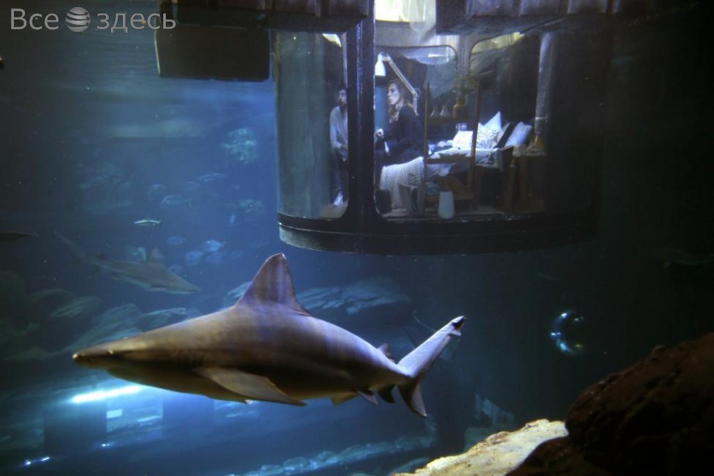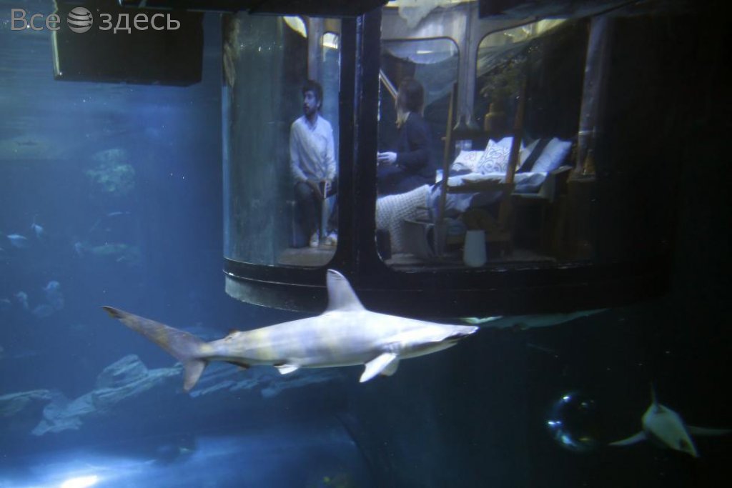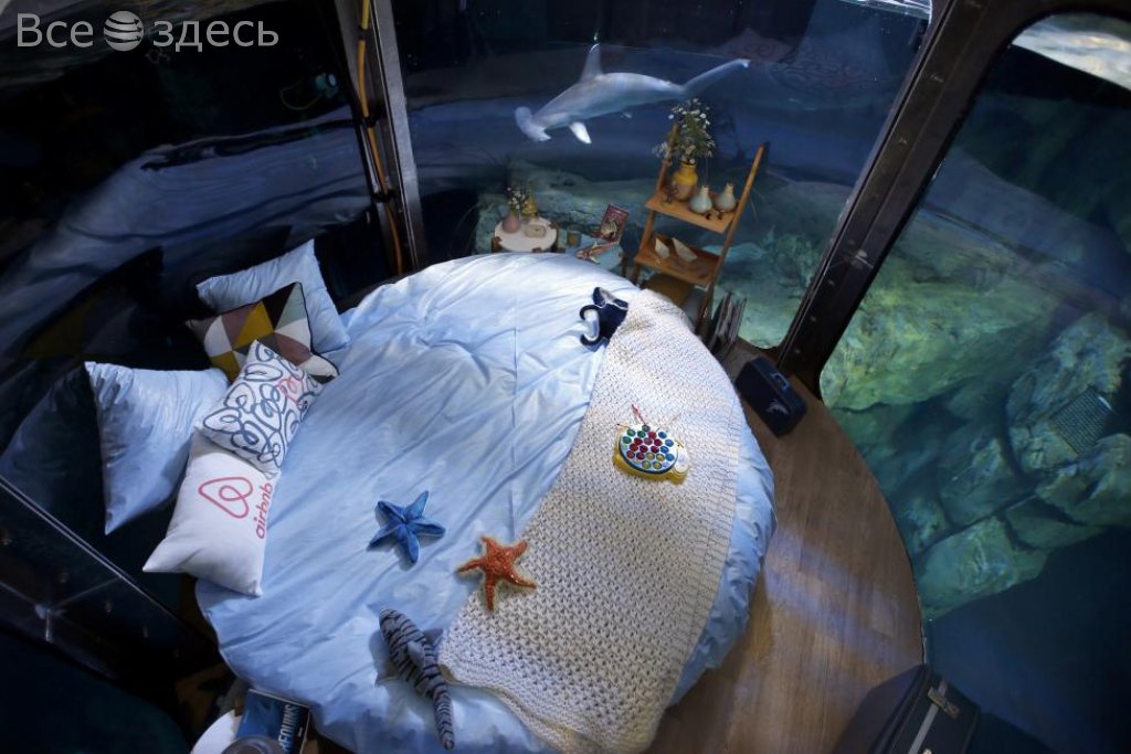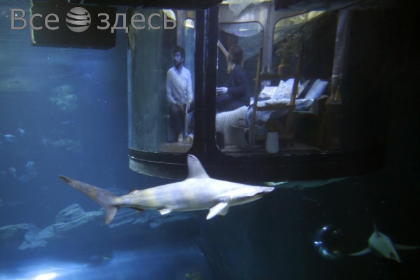 Это идеальное приключение придумали для любителей экстрима в океанариуме, который находится в Париже. Организаторы, действуя с одним из известных сайтов для путешественников, предлагают провести целую ночь в небольшом и прозрачном аквариуме, который окружён… акулами. Чтобы поучаствовать в этом экстрим-проекте, претендент должен заранее оставить онлайн-заявку на Airbn, в которой надо убедительно объяснить, в связи с чем такую возможность надо предоставить именно ему. Как спальня данное место просуществует в апреле только три дня. Вмещается в нее всего четыре человека одновременно, таким образом, поучаствуют в акции лишь двенадцать человек. А затем спальня снова станет научной лабораторией для морских биологов.