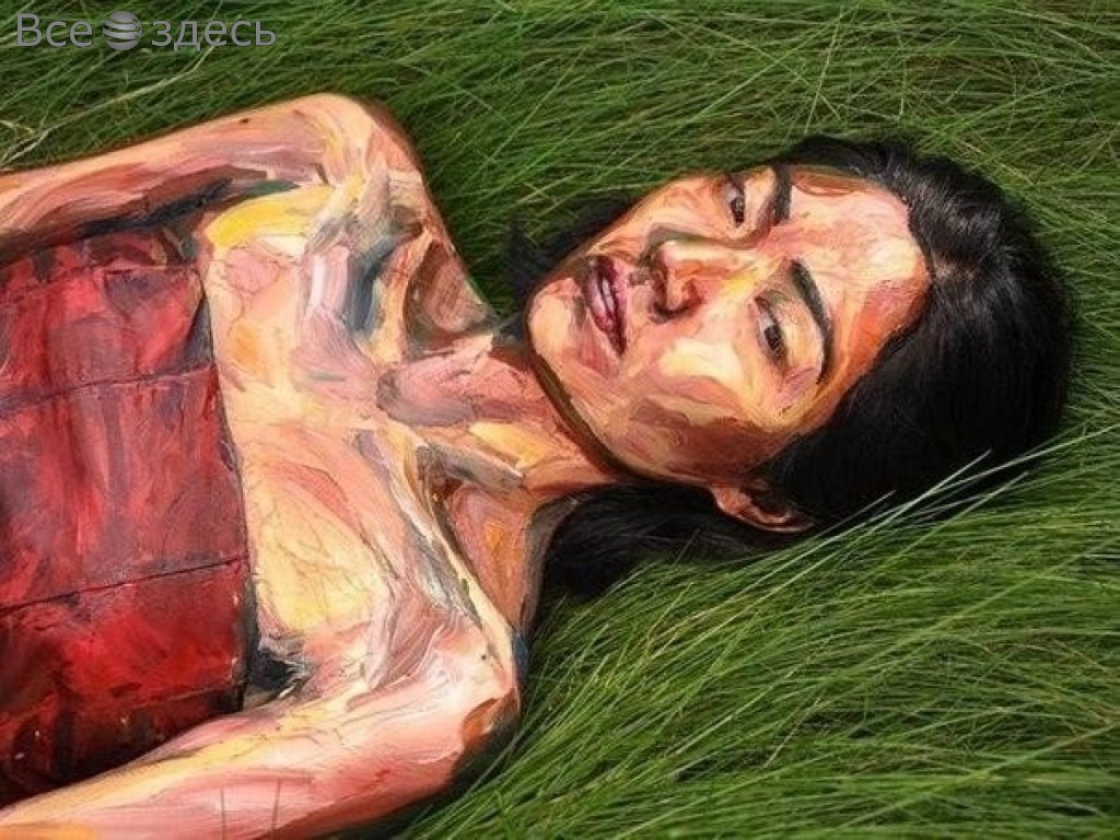Практически все художники в своем творчестве изображают моделей, а вот Алекса Мид творчеством занимается творчеством совершенно по-иному. Она, изначально, разрисовывает моделей живых. А уже потом художница фотографирует их так, что зрителям остается лишь удивляться, это реальность или искусство. Немного нереально выглядят разрисованные красками люди, кажется, будто это вырванная из контекста картина оказалась каким-то образом среди настоящего. Особенно жутковато смотрятся живые картины на выставках. Посмотрите, это декорации либо самые настоящие люди? Решать вам!