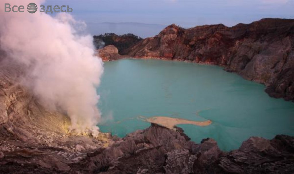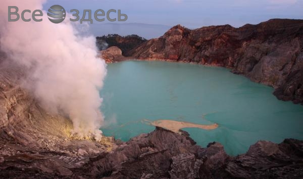 Один из странных рудников нашей планеты находится на индонезийской Яве. На этом острове расположен вулкан Иджен. Его высота 2386 метров. У небольшого озера, которое представляет собой сплошную серную кислоту, образовался настоящий серодобывающий комплекс.