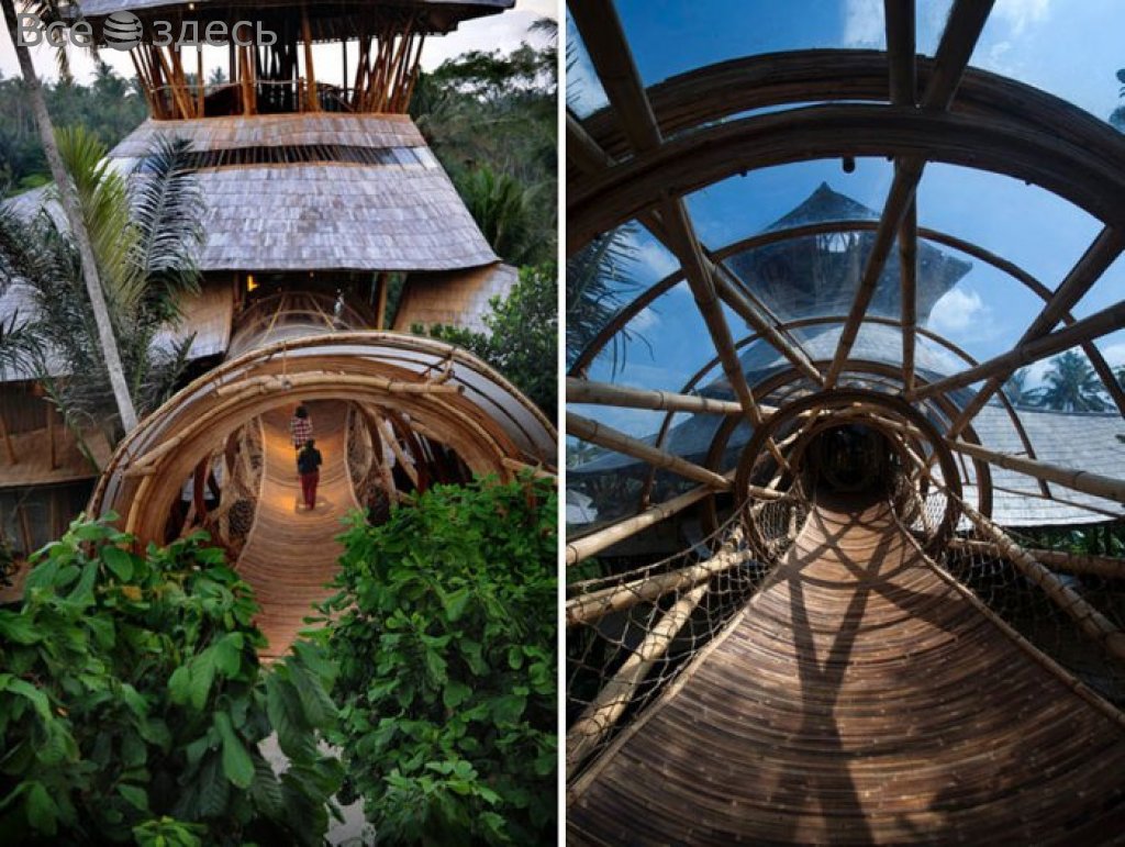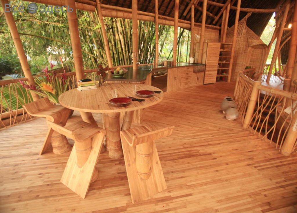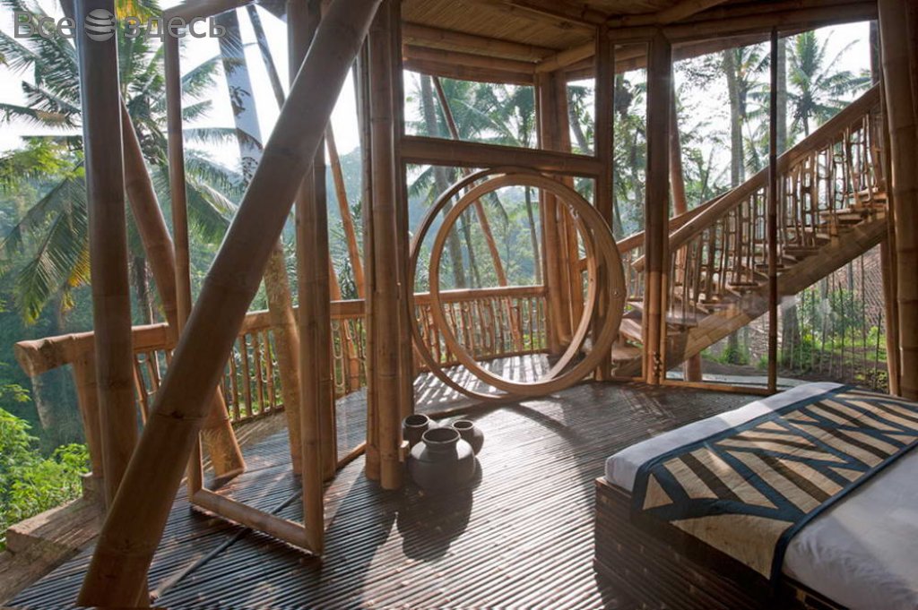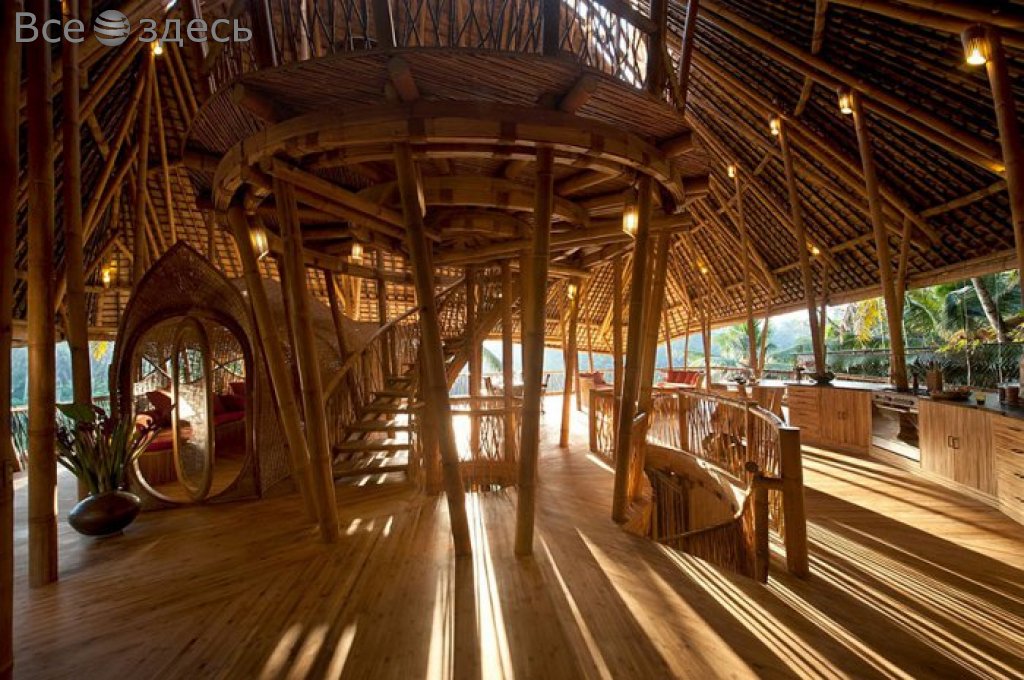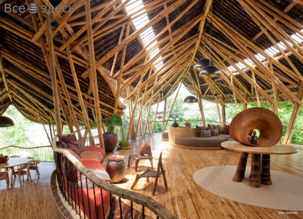 У Элоры Харди в портфолио есть несколько роскошных вилл и простых домов, сделанных из не совсем обычного материала. Известно, что бамбук растет довольно быстро, обладает при этом некими особыми свойствами, к примеру, хорошей гибкостью, а также устойчивостью к сжатию. При этом изогнутая форма бамбука отлично влияет на форму здания. Бамбуковые гвозди даже используются вместо стальных гвоздей в данной конструкции. Стальными лишь фиксируют наиболее важные точки конструкции. Находится в таком здании – все равно, что прочувствовать себя бамбуковой пандой, - улыбаются частые гости Харди.