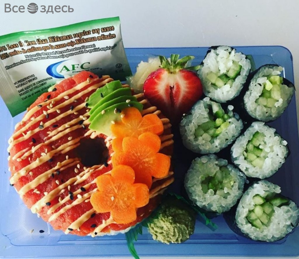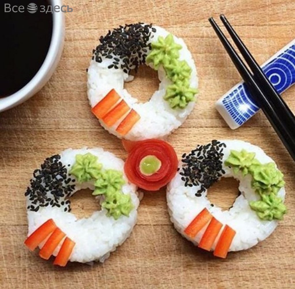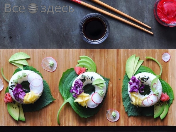 Сеть стали ну просто стремительно наполнять самые разные фото суши, которые сделаны в форме пончиков. Создателем их является некий австралийский блогер, ник у которого - Sam. Это девушка. Стоило ей опубликовать в Instagram свои прикольные фотоснимки, на которых запечатлены необычные веганские роллы, как интернет просто вспыхнул целой волной нового оригинального фуд-тренда. Теперь фотоснимки суперских роллов появляются в сети с тегом, который выглядит так: #sushidonuts. Вы будете в самом последнем тренде, если сделаете подобный снимок! При этом веганские роллы полезны для здоровья – уверяют последователи нового тренда.
