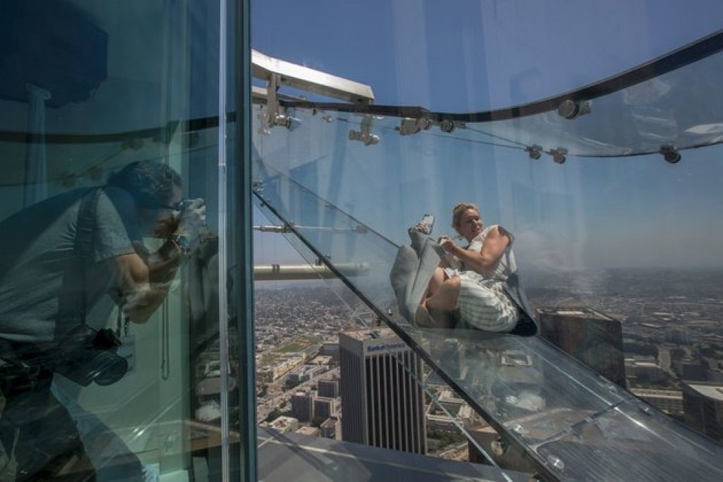 Быть может, вы согласились бы прокатиться по невероятно, крутой, экстремальной, абсолютно стеклянной горке? А если бы она вела по вершине небоскрёба, который высотой больше трехсот метров? Горка начинается где-то на семидесятом этаже одного известного банковского сооружения, расположенного в самом центре Лос-Анджелеса. Длина стеклянной горки – около четырнадцати метров. По словам создателей, эта горка сможет запросто выдержать сразу двух голубых китов. Возможно, однако, и после этого утверждения она менее страшной для нас не становится. А вы смогли бы рискнуть и проверить уровень своего адреналина?