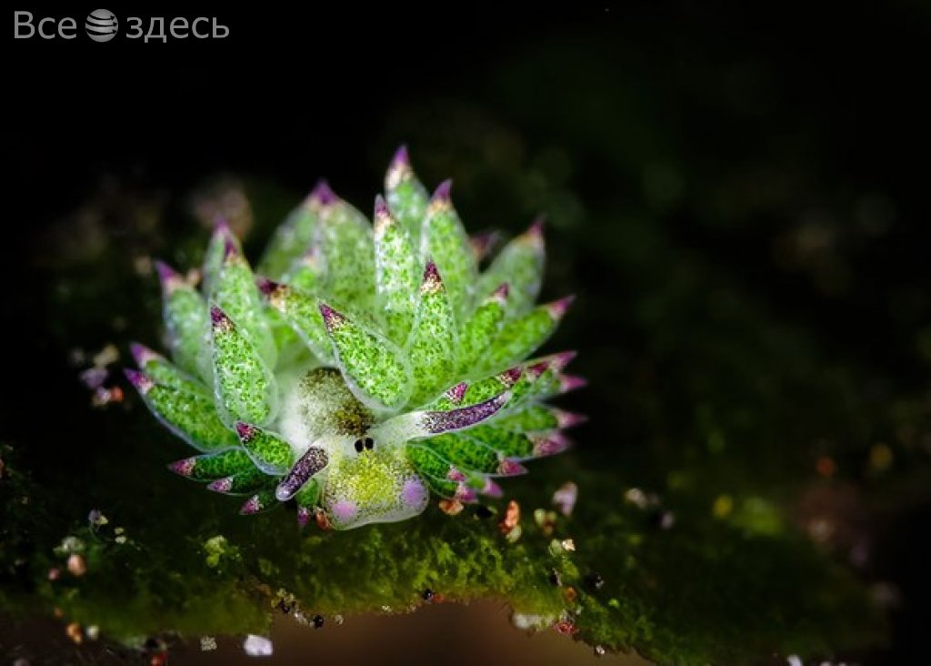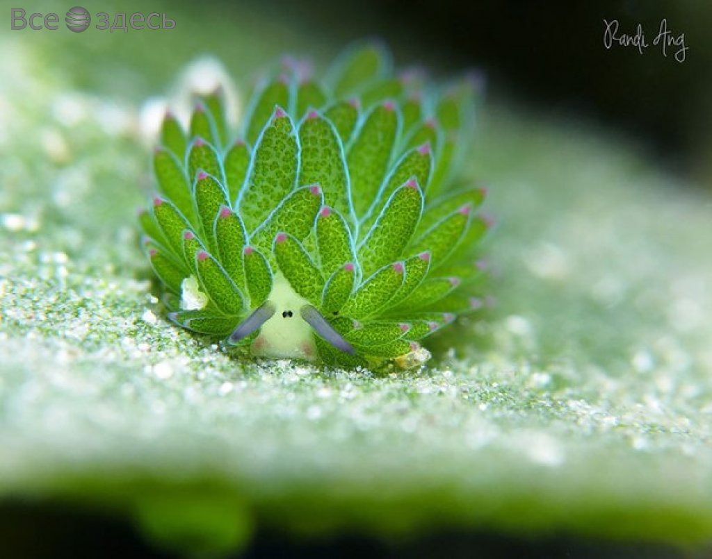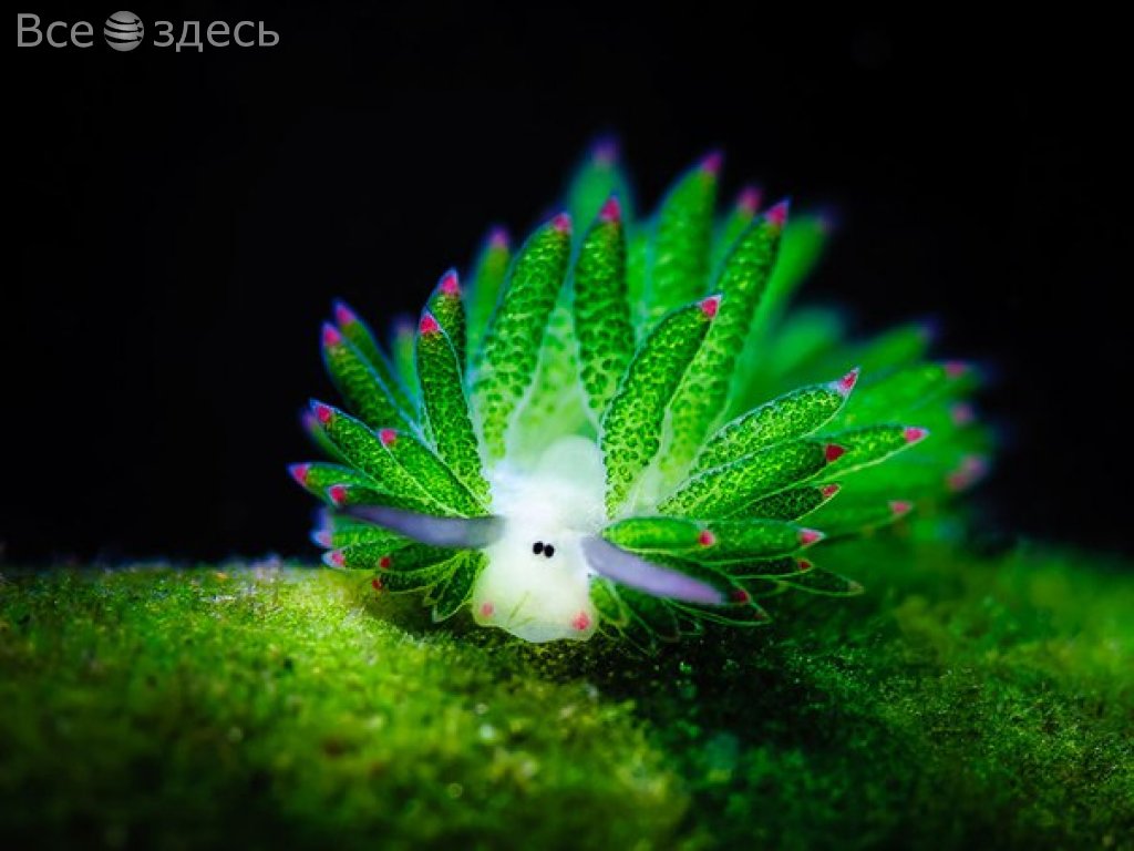 Правда, он восхитительный? Маленький морской слизнячок по имени Costasiella kuroshimae с виду несколько напоминает милую овечку. Благодаря небольшим глазкам-бусинкам, своим усикам, он пробрел сходство на это славное пушистое животное. Правда, в отличие от овцы, слизняк питается водорослями. Кроме того, он один из немногих животных, способных осуществлять фотосинтез. Найти морского слизняка можно у берегов Филиппин, Японии и Индонезии. Вот только мы сомневаемся, что вы легко разглядите его среди кораллов, водорослей, медуз и прочих обитателей морского дна, так как он очень мал.