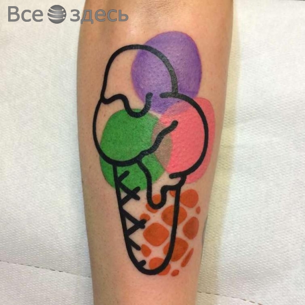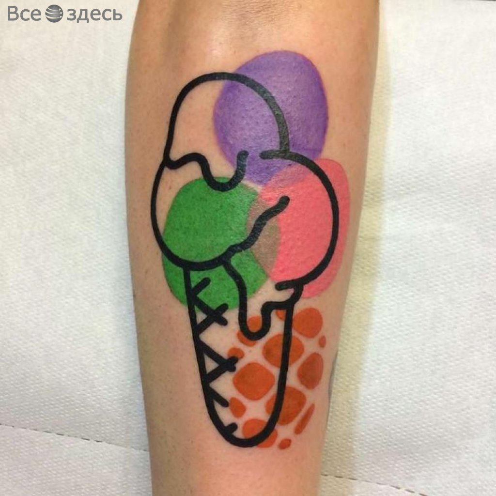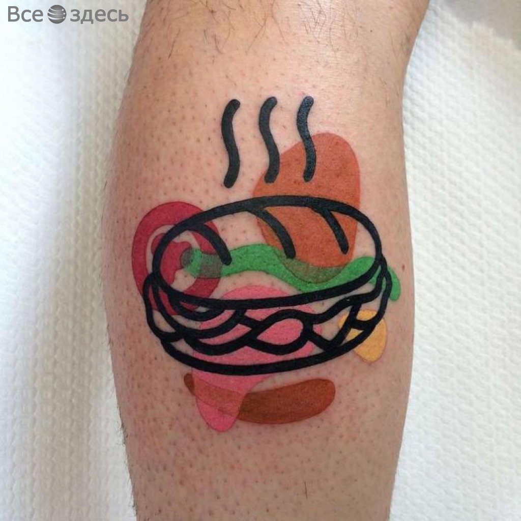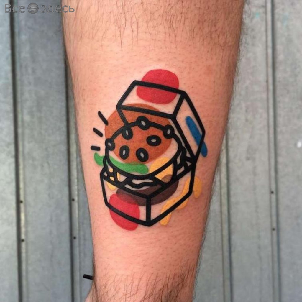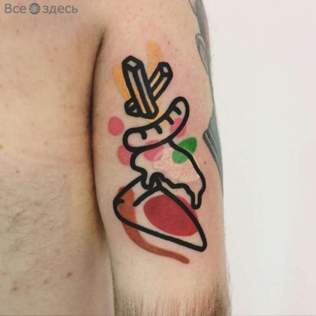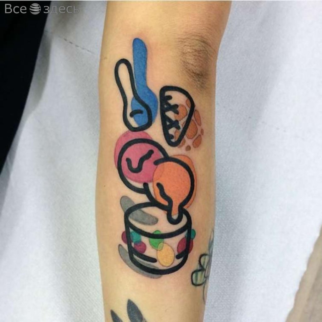 Так уж получилось, Маттиа живет в Милане. Там он и создает очаровательные и несколько деконструктивные татуировки. При этом в центре внимания практически всех работ татуировщика лежат, в основном, привычные всем нам вещи, такие как гамбургер либо мороженое на палочке. Но самое интересное в каждой из них - стиль подачи, оригинальность идеи, которые использует для выполнения мастер. Итак, да здравствуют цвета, яркость и контур!