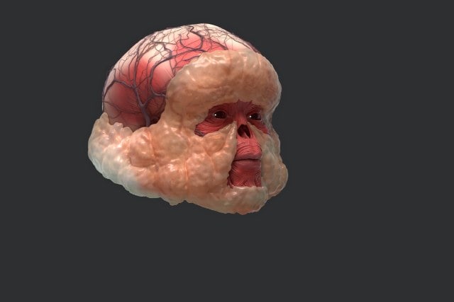 У Грэхама усиленный череп, двойные ребра, очень толстая кожа, колени двигаются во все стороны, пятки подтянуты вверх, а лицо расплющено - в него утоплены глаза, рот и нос. Вот такой красавчик получился.
