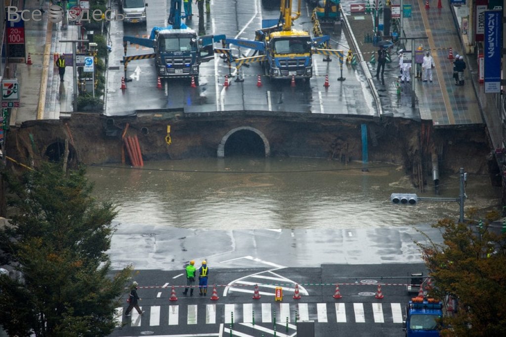 В центре японского мегаполиса образовалась огромная яма (фото, видео)