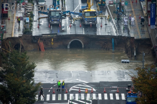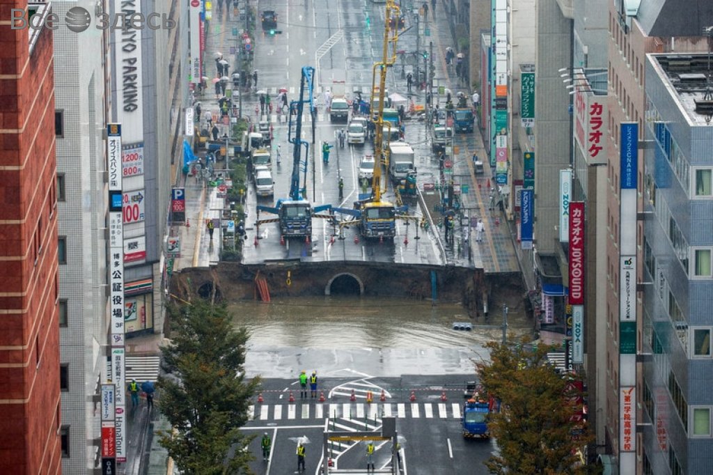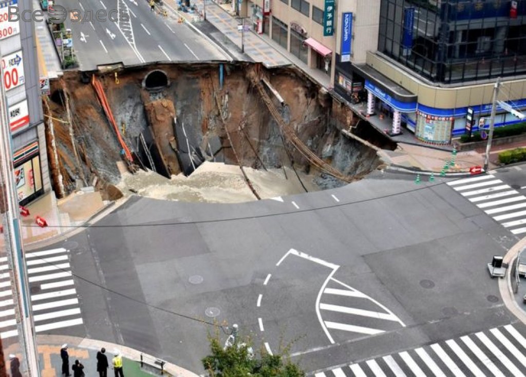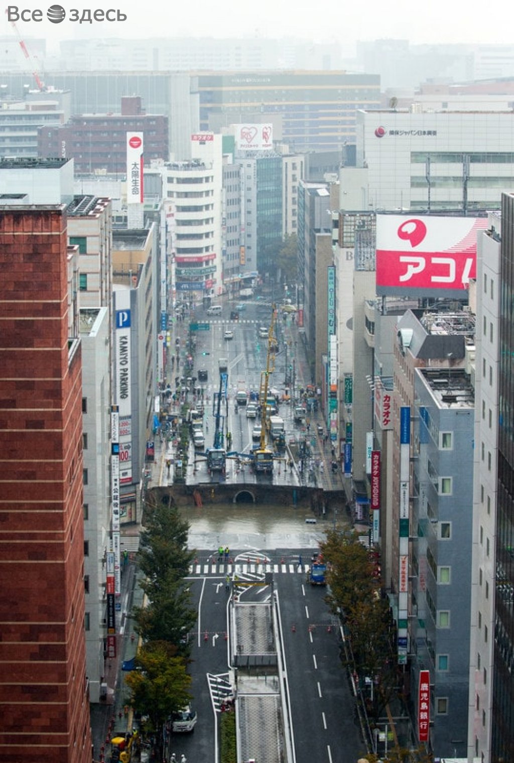 Утром 8 ноября в одном из крупнейших японских мегаполисов Фукуока рядом с центральным железнодорожным вокзалом образовалась огромная яма шириной около 30 метров и глубиной около 15 метров.
