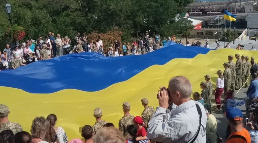 В Одессе горожане собрались на Потемской лестнице, где подняли 26-метровый флаг, что символизирует 26-ую годовщину независимости Украины. При этом организаторы праздника отмечают, что уже 9 лет таким образом одесситы отмечают государственный праздник.