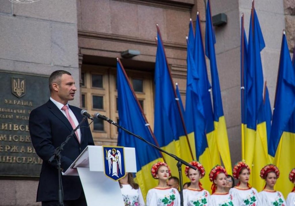 Торжественная церемония поднятия флага в Киеве прошла перед зданием столичного горсовета. На мероприятии присутствовал мэр Киева Виталий Кличко, который поздравил всех присутствующих с государственным праздником и рассказал, что для украинского народа флаг всегда был символом победы и силы духа. К слову, на флагштоке развивается знамя, которое было первым сине-желтым флагом, поднятым в 1990 году еще до провозглашения независимости Украины.