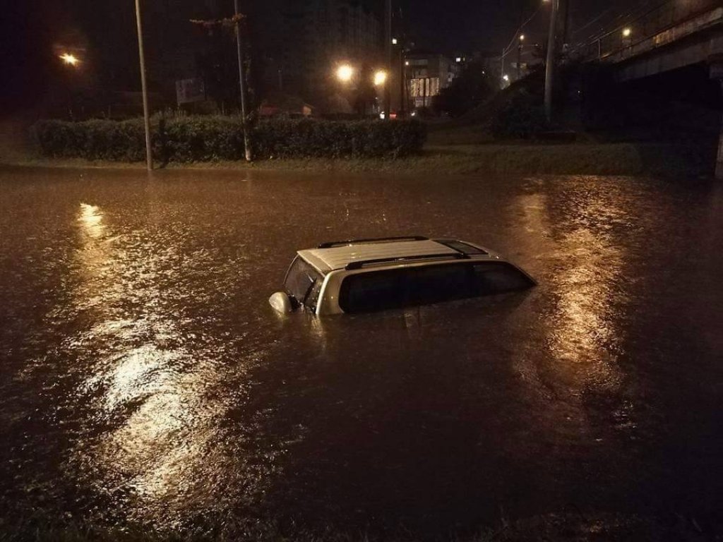Обещанная синоптиками непогода, в частности сильный ливень, ветер и град обрушились на улицы Ивано-Франковска, в результате чего город затопило.
