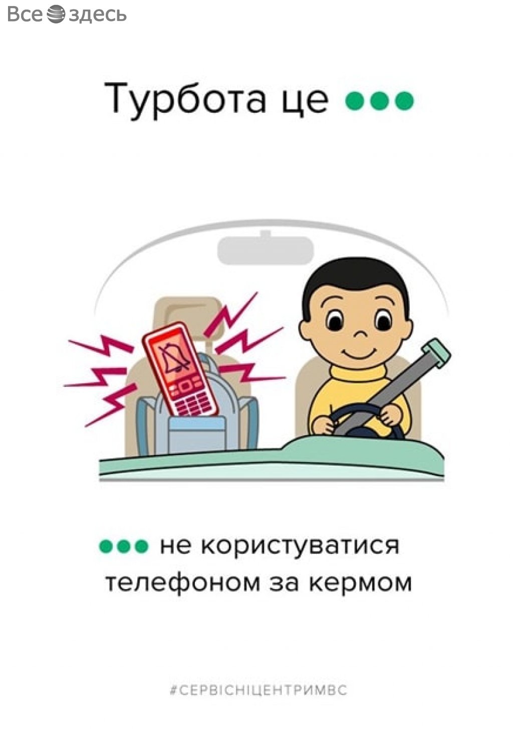 Согласно обнародованным картинкам, сотрудники министерства в очередной раз призывают пешеходов и водителей не забывать о банальных, но очень важных правилах дорожного движения. Так, для сюжетов иллюстраций «Забота – это…» послужили типичные ситуации, при не соблюдении которых в Украине каждый день происходят дорожно-транспортные происшествия. В частности, в МВД призывают граждан переходить дорогу в положенном для этого месте и исключительно на зеленый свет, напоминать своим вторым половинкам пристегивать ремни безопасности, не пользоваться мобильным телефоном во время управления автотранспортным средством, перевозить детей в специальном автокресле, своевременно «переобувать» машину и другое. К слову, в данных иллюстрациях затрагиваются и другие важные правила, такие, как не мусорить из окна автомобилей.