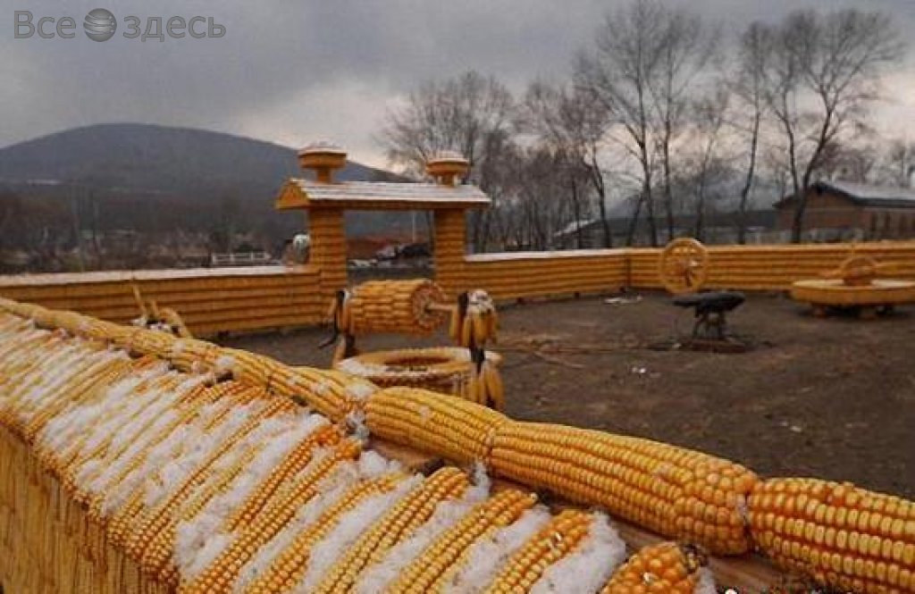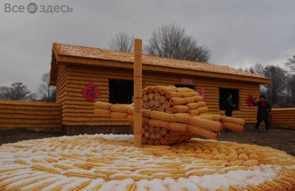 В северо-восточном Китае местный фермер Лю Хунцай возвел «золотой» дом. На необычную постройку ушло более чем 20 тысяч початков кукурузы. Об этом сообщается в китайских медиаресурсах.