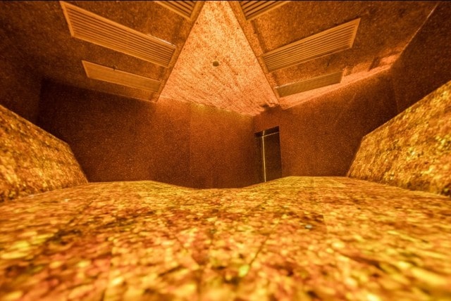 Дело в том, что отделка бани полностью выполнена из яркого, и, как считают специалисты, полезного для здоровья, солнечного камня. Они утверждают, если янтарь нагреть до определенной температуры, не меньше 45-48 градусов, выделяется янтарная кислота. С ее помощью обмен веществ в организме человека проходит более активно, а это положительно влияет на здоровье. Спа-сеансы в янтарной комнате успокаивают нервную систему, способствуют снятию стресса. Прежде чем решиться на сооружение недешевого объекта, в оздоровительном центре Atostogų parkas изучали свойства янтаря, консультировались с учеными, специалистами. Получив аргументированные выводы, что взаимодействие трех факторов – самого камня, тепла и инфракрасных лучей, создают условия для укрепления здоровья, приняли решение обустроить янтарную комнату в бане. На ее сооружение ушло 3 т янтаря.