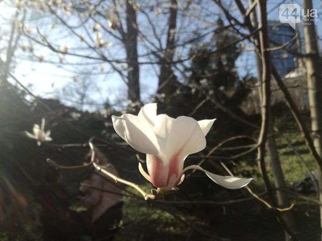 «В воздухе уже пахнет весной. Солнышко пригрело, и распустилась магнолия, как и 140 миллионов лет назад (примечание редакции – данное растение появилось на земле в меловом периоде)», - комментируют в соцсетях обнародование снимки киевляне.