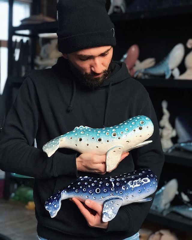 30-летний дончанин Виктор во время боевых действий, которые развернулись на Востоке Украины, переехал вместе с женой в украинскую столицу. За короткий промежуток времени молодой мужчина открыл в Киеве мастерскую, где лично создает невероятные скульптуры из глины (кашалатов, китов, касаток, которые будто плывут в воздухе), а также стильные предметы для декора, домашнего и офисного интерьера. Кроме того, на базе «KUST ceramics» архитектор пытается создать образовательную платформу и проводит в ней мастер-классы для всех желающих. К слову, начинал свою деятельность в Киеве парень с небольшого уголка в части студии возле Контрактовой площади.