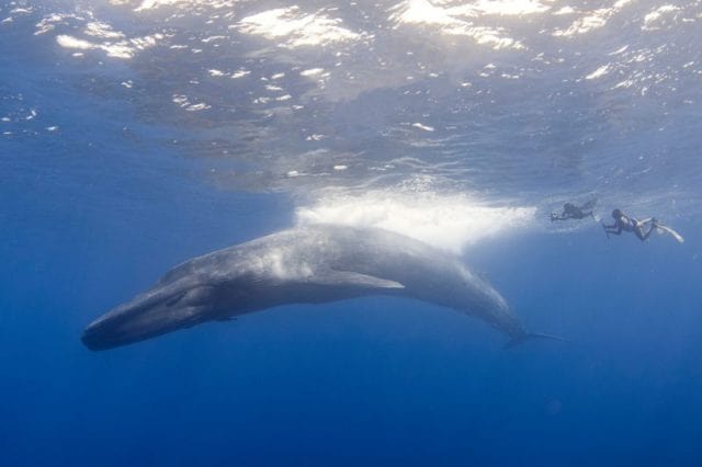 Стоит отметить, что местные дайверы на Шри-Ланке уже давно и сравнительно успешно возят экскурсии на свидание тет-а-тет с китами. Легкая моторная лодка обгоняет кита по ходу движения, и у ныряльщиков есть 10-20 секунд на то, что бы увидеть кита, пока он не ушел на глубину. Соответствующих фото и видео в сети предостаточно. Эти экскурсии нелегальны и могут быть опасны, но кого это останавливает?..