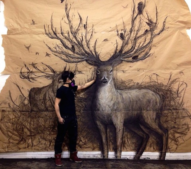 Восхищают не только ее картины, но особенные фотографии, на которых автор возле своих работ подчеркивает эффектность созданной иллюзии. Птицы, сидящие на нарисованных рогах у огромного оленя, выглядят особенно реалистично, и кажется, из его ноздрей будет видно парное дыхание. Свирепость акул, а также мощь китов, которые готовы выплыть из противоположных стен, можно не только прощупать, но и прочувствовать.