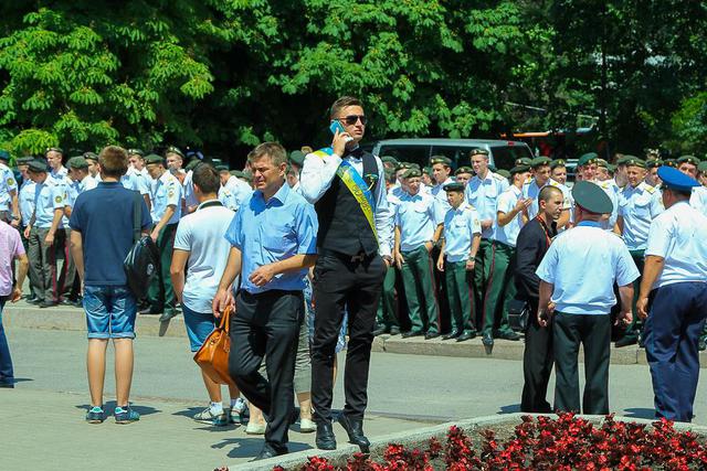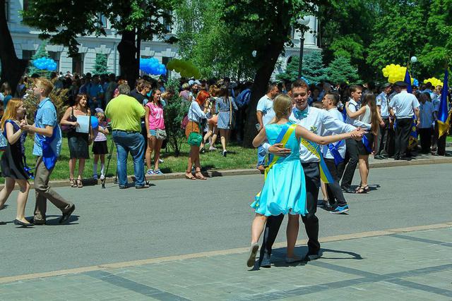 Отметим, что у здания ОГА с окончанием школы всех поздравил Борис Филатов, заместитель губернатора области, Евгений Удод, глава областного совета. После этого, в сопровождении военного оркестра и барабанщиц все выпускники выдвинулись к центру города. А там особенную программу для старшеклассников подготовили городские коллективы самодеятельности и младшие школьники. Позже в небо полетели пять тысяч воздушных шаров.