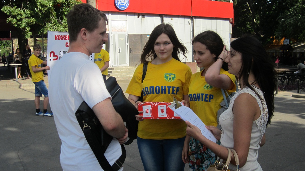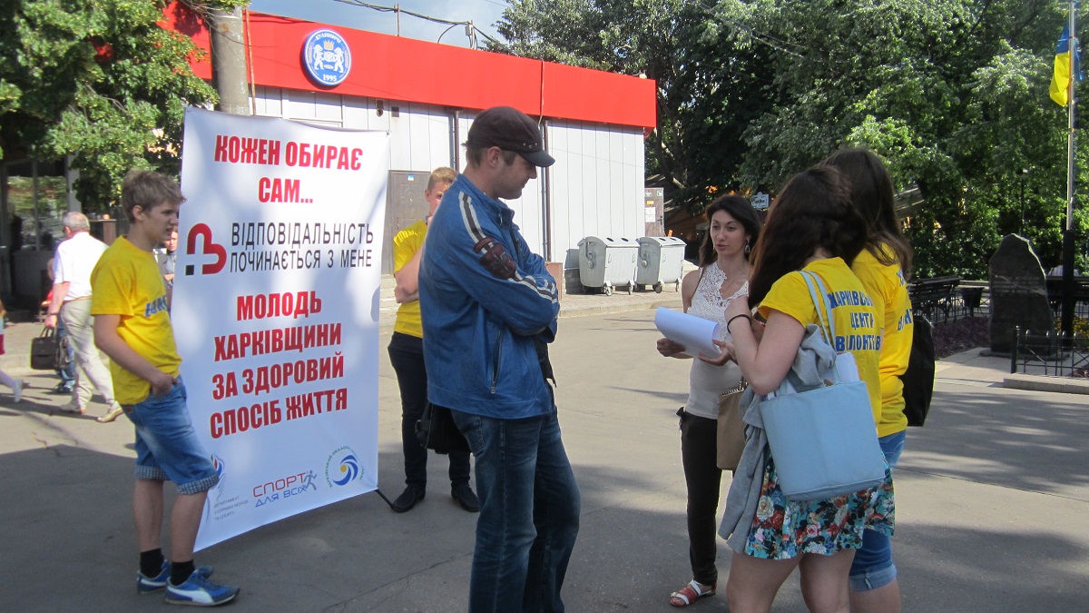 В Харькове прошел полезный флеш-моб. Недалеко от станции метро «Университет» ребята рассказывали простым прохожим, что на сегодняшний день уже не модно курить, а о ВИЧ и СПИДе знать надо как можно больше.