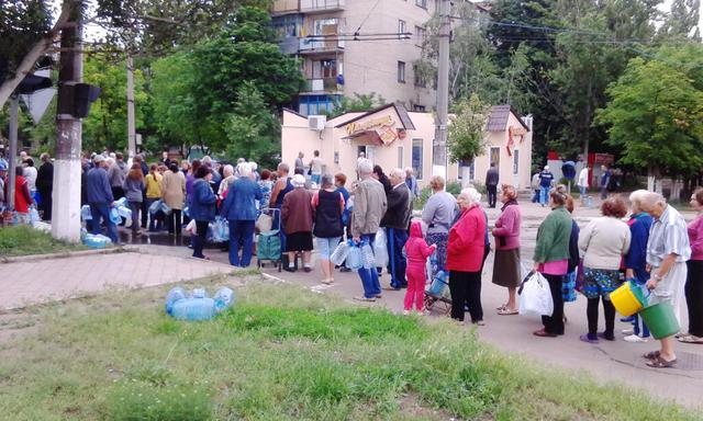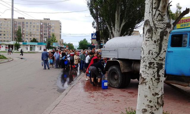 Так во многих селах и городах вода из кранов течет по часам. А вот в Славянске водоснабжение было полностью остановлено. Люли вынуждены выстраиваться в длиннющие очереди, чтобы набрать себе привозной воды.