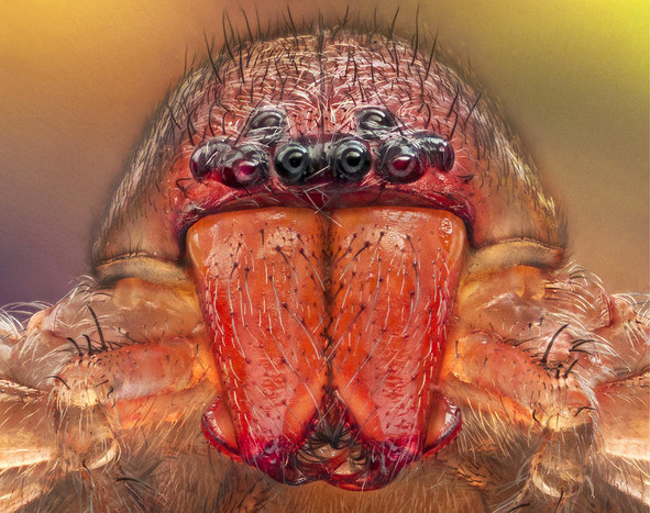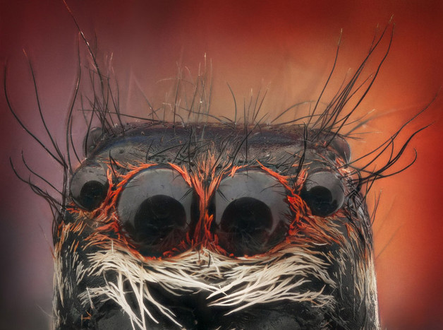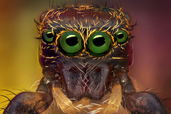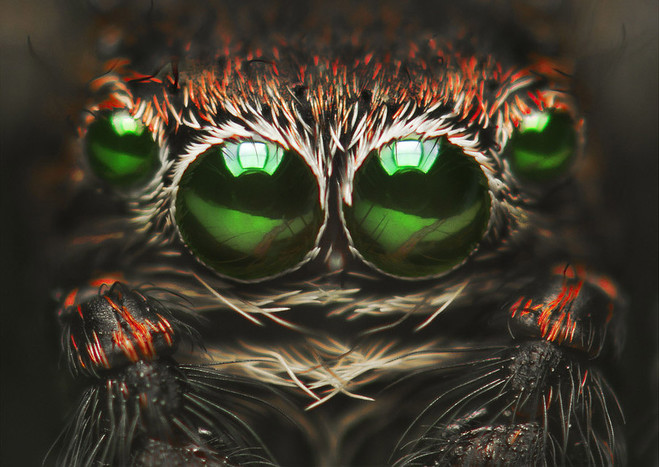 Чтобы получились такие впечатляющие шедевры, он использует специальные объективы, которые позволяют этих членистоногих запечатлевать в их натуральную величину. А еще в их глазах можно рассмотреть отражение.