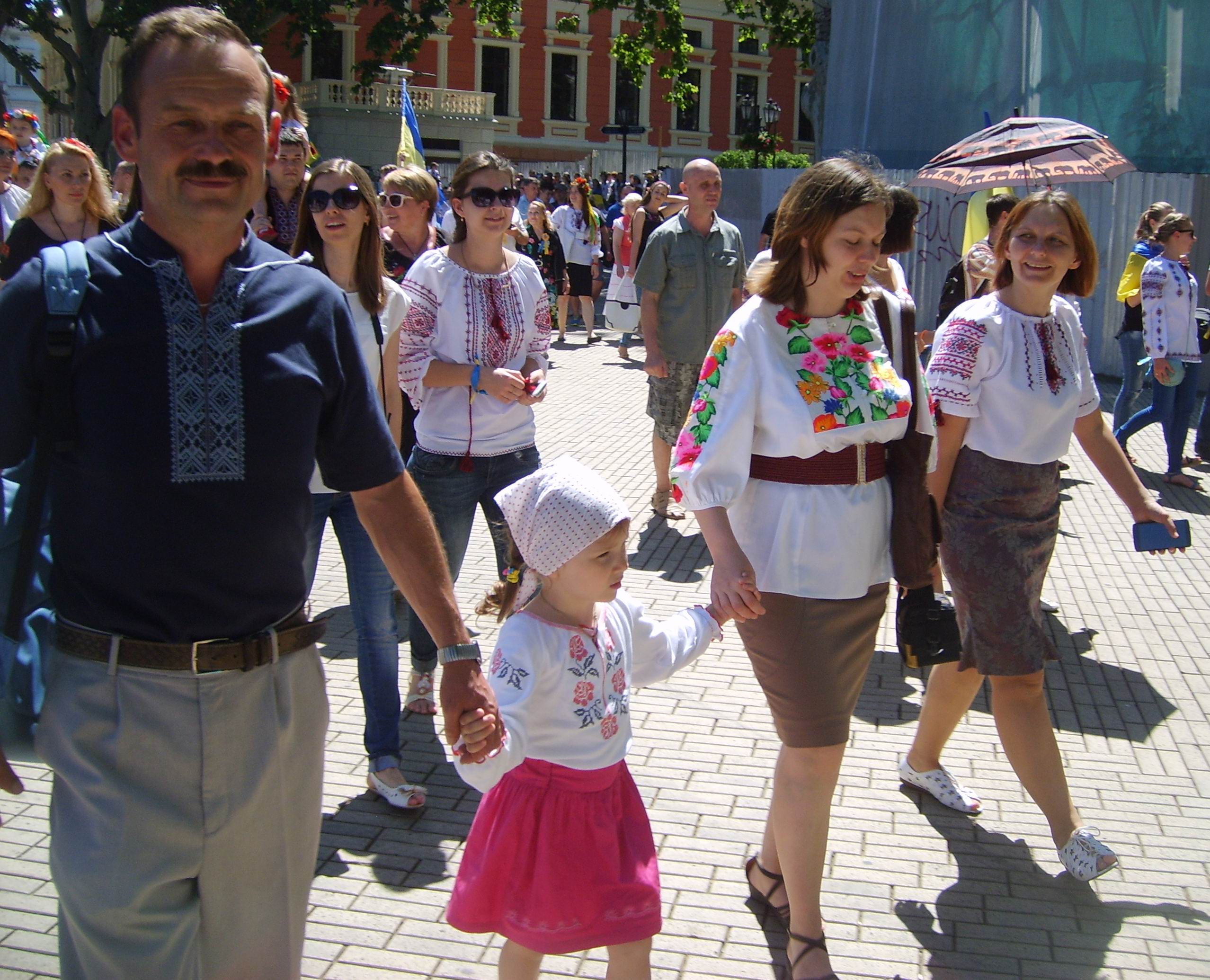 Двадцать восьмого июня в Одессе прошел настоящий Мегамарш людей, которые выбирают Украину. Они были наряжены в вышиванки. Участники марша стройными и веселыми рядами прогулялись от самой улицы Дерибасовской до Воронцовского дворца. К слову, среди патриотически настроенных горожан, можно было обнаружить не только разновозрастных участников, но и людей разного цвета кожи, противоположного вероисповедания. Яркие и интересные, «настоящие» и стилизованные – вышиванки прекрасно смотрелись на каждом человке, не зависимо от индивидуальных особенностей.