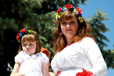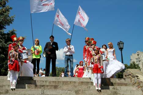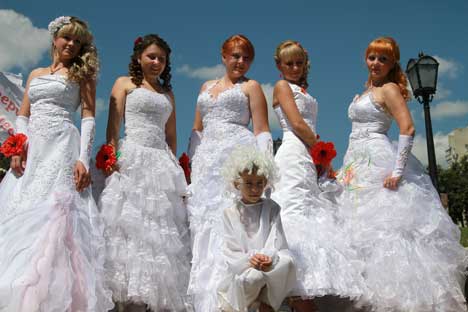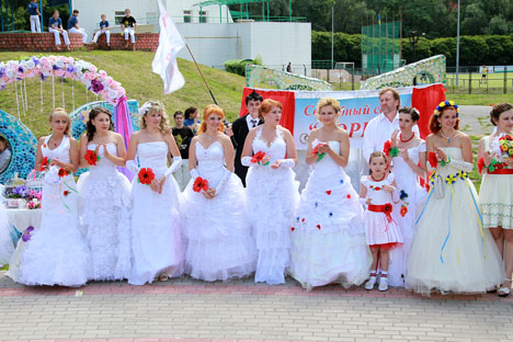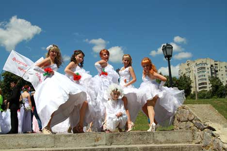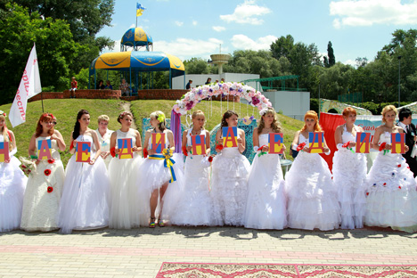 Некоторые невесты украсили себя в украинском стиле. На ручке у каждой был красный мак - праздник приурочили к двухсотлетию Шевченко