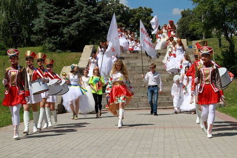 В Сумах прошел прекрасный праздник под названием «Феерия невест». Немного ранее, из-за дождя его решили перенести на тридцатое июня. Организаторы мероприятия отмечают, в параде решили зарегистрироваться около пятидесяти невест. Пришло, все же меньше, около сорока человек. Мероприятие началось в парке «Сказка» около одиннадцати часов. Невесты спустились к фонтану и началась уже официальная часть. Невесты прогуливались вокруг фонтана под всеобщее ликование.