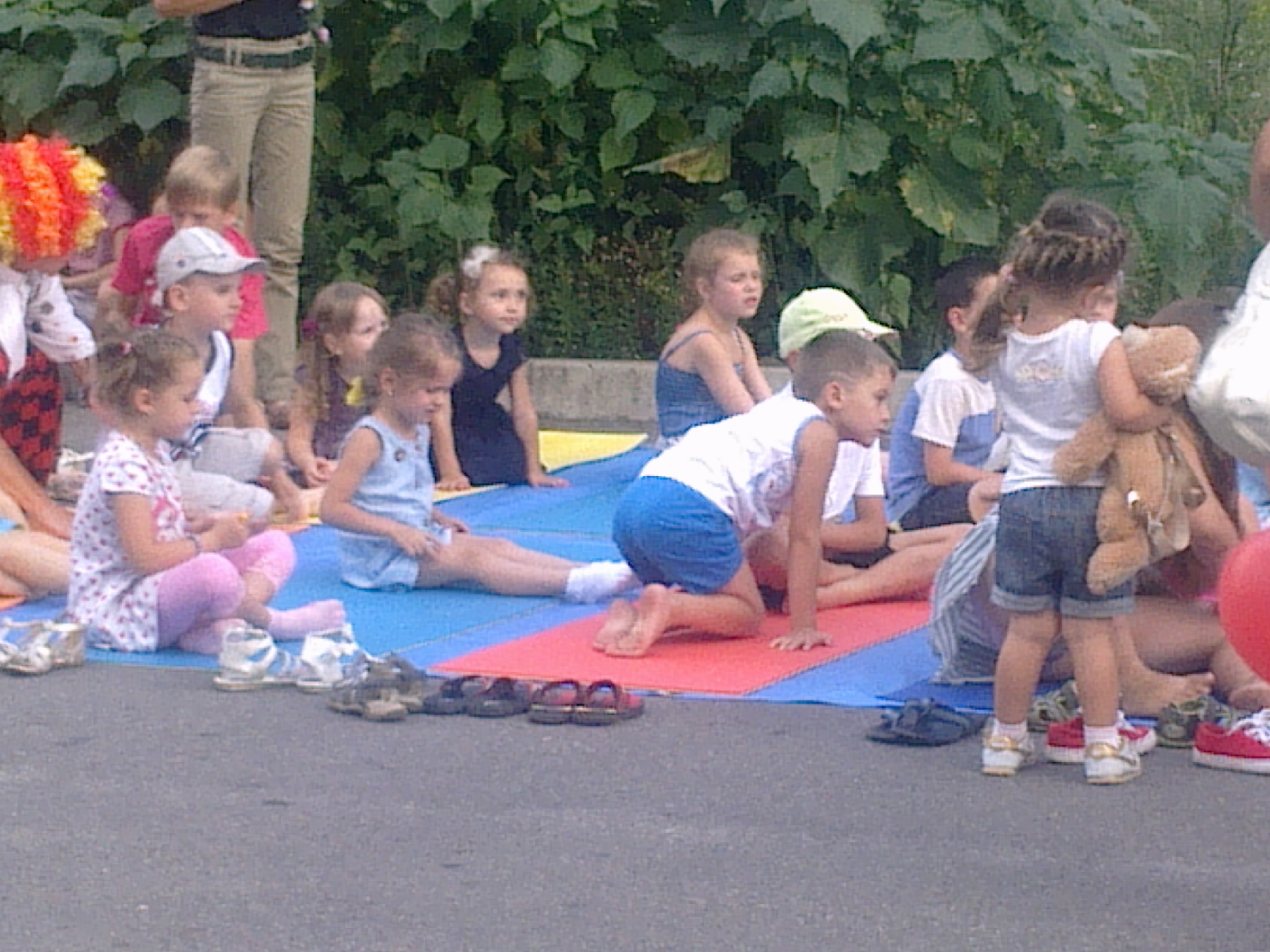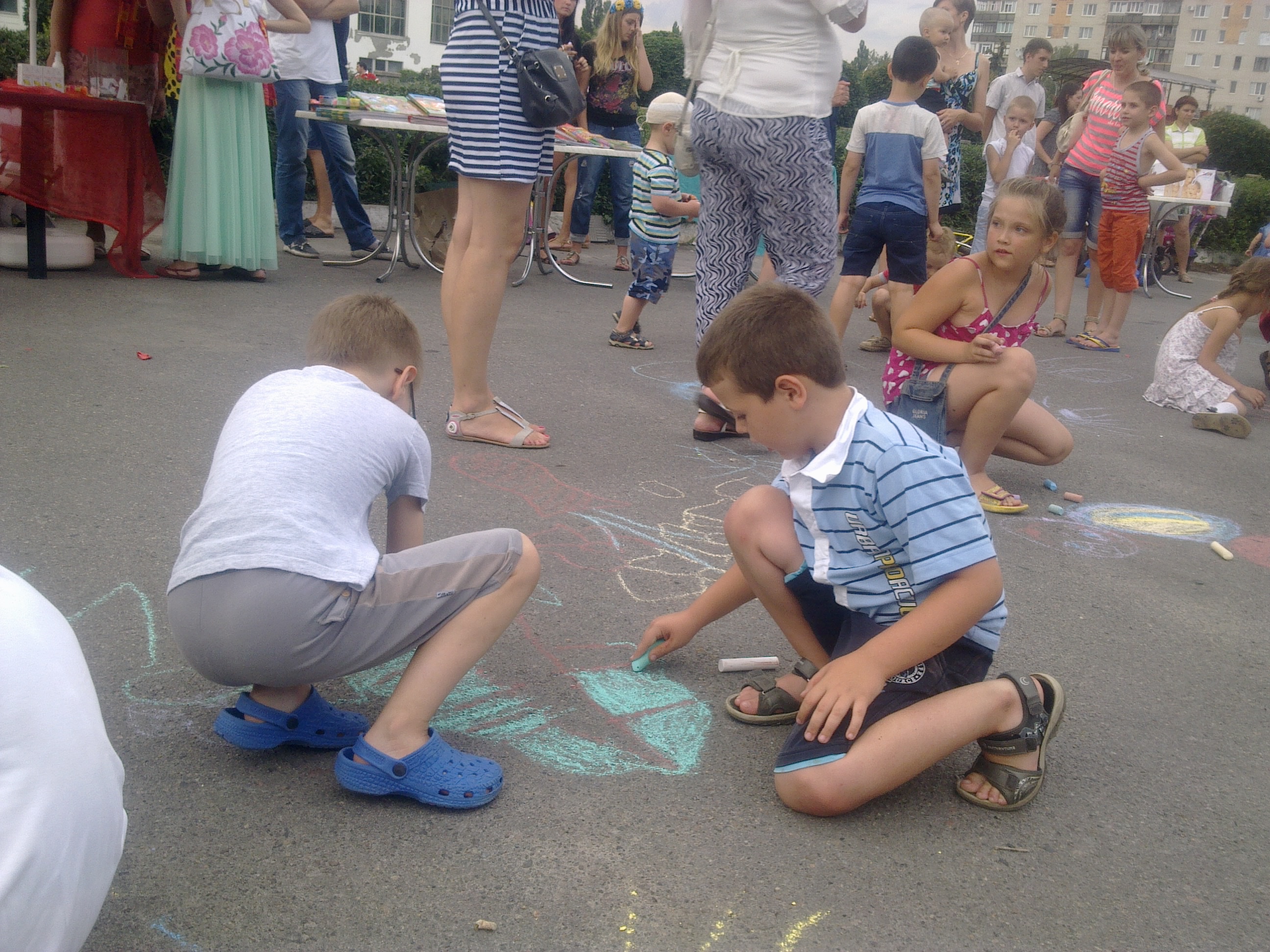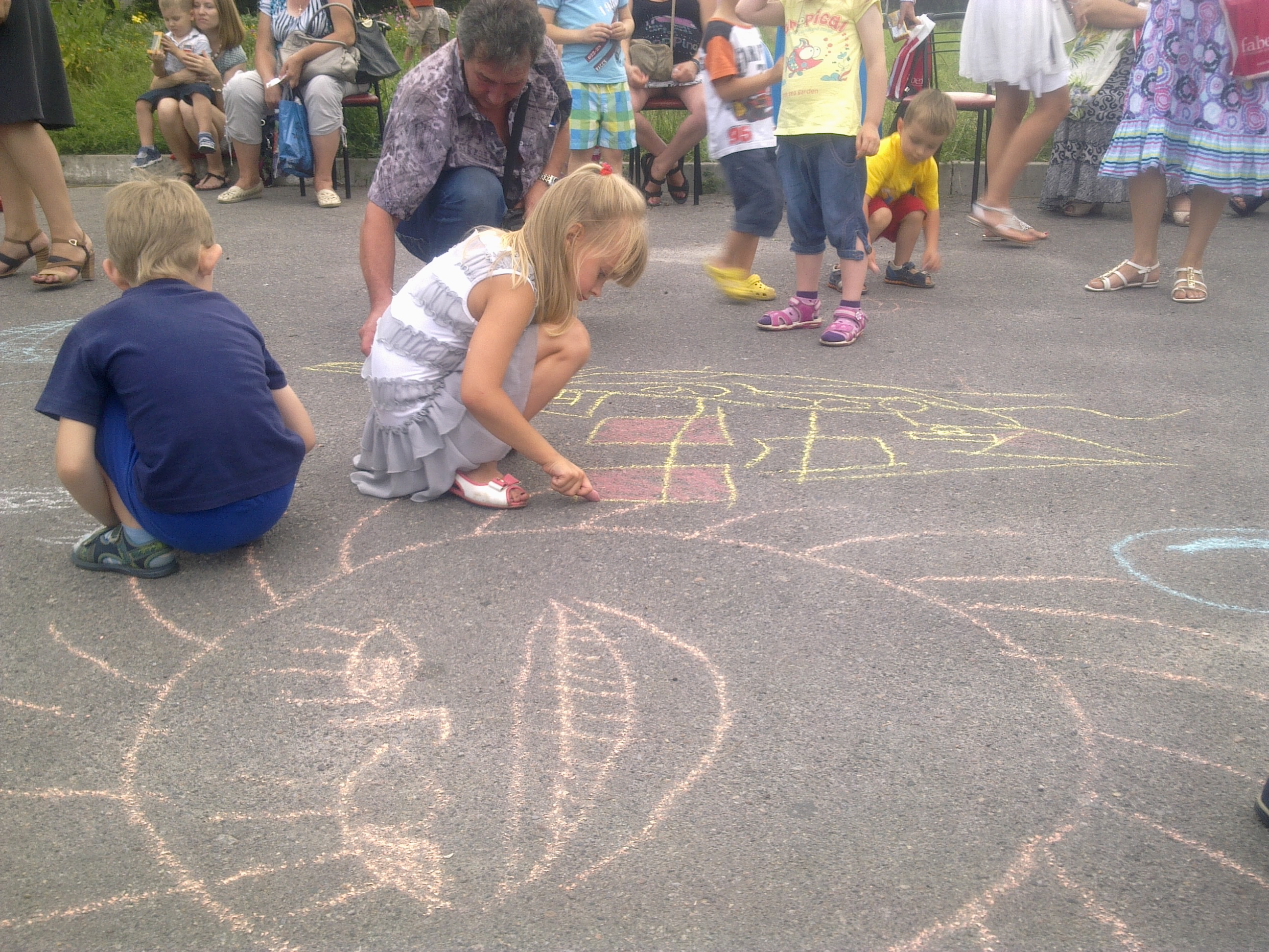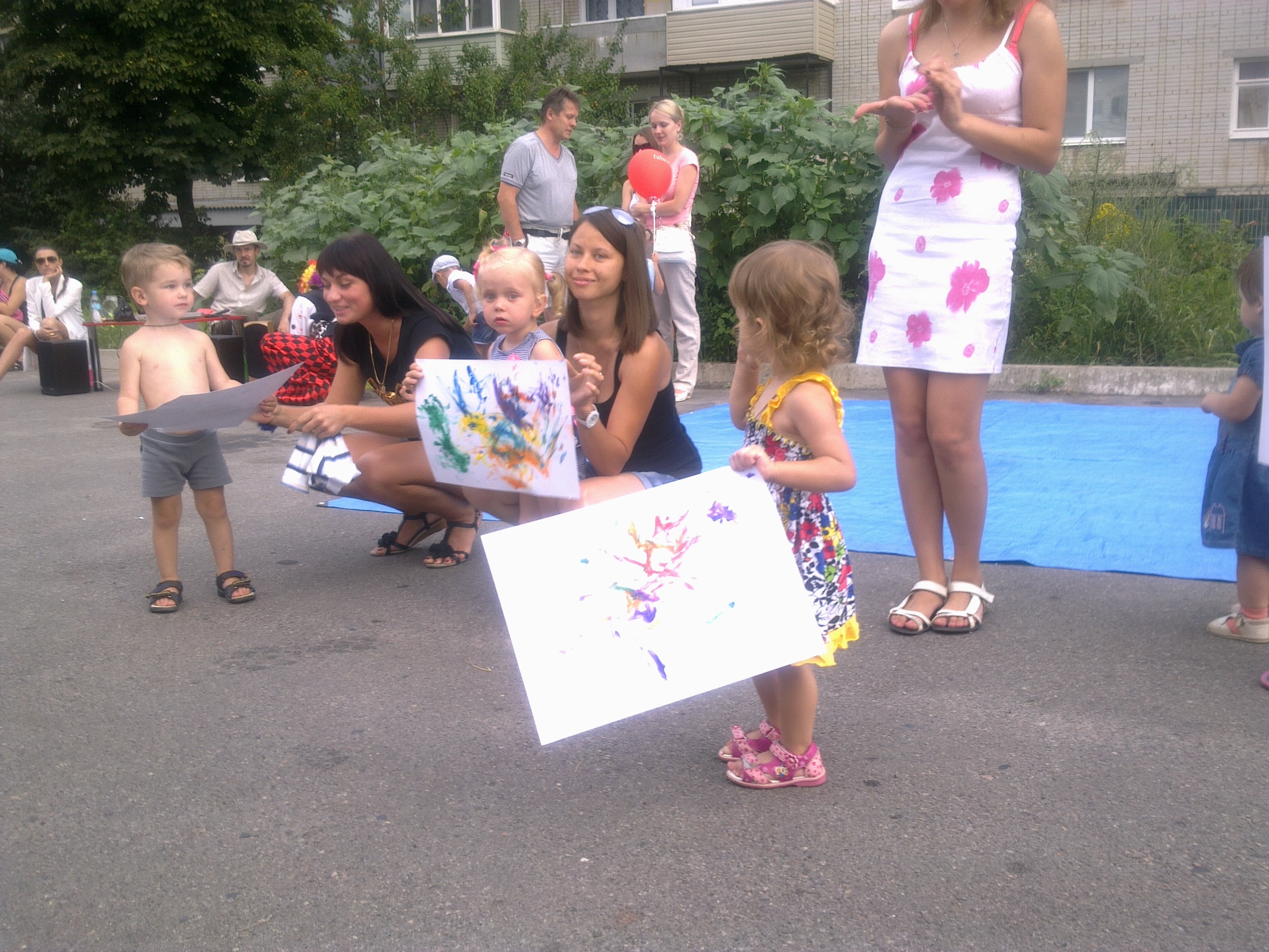 Веселые конкурсы, примеры ритмических занятий, которые проводятся обычно в центре, рисунки на асфальте, танцы и песенки, даже йога для самых маленьких – подготовили для маленьких гостей. И для наиболее младших участников организаторы подобрали подходящие развлечения – они рисовали яркими красками, размазывая их своими ладошками. Каждый из победителей получил приз, а каждого участника конкурсов порадовали утешительными подарками, и абсолютно для всех гостей праздника – вкусное печенье с предсказаниями – как тут не остаться довольным? Даже погода смилостивилась, и, несмотря на отдаленные громовые раскаты и темные тучи, приберегла дождик, не мешая ребятишкам веселиться.