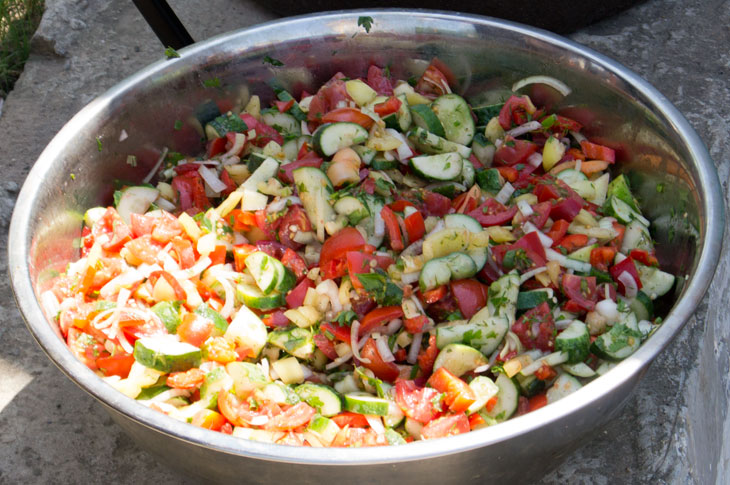 Каждый день покушать сюда приходит около полусотни человек. Есть также те люди, кому доставляют еду в разные части города. Сегодня у бездомных на обед была картошка, паштет, салат из помидоров и маринованные грибы. Перед едой у бездомных тут - обязательная молитва.