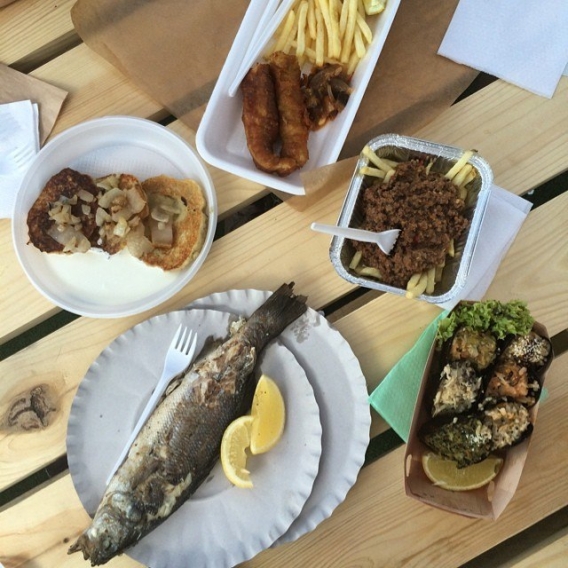 Отличительная особенность этого раза – представление вареников с самыми невероятными начинками, и огромное количество рыбы: макрель, лосось, пикша, треска, ставридка, сардины, анчоусы, кефаль и многое другое – это все готовили непосредственно на глазах посетителей.