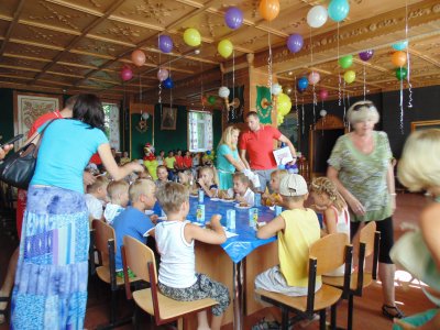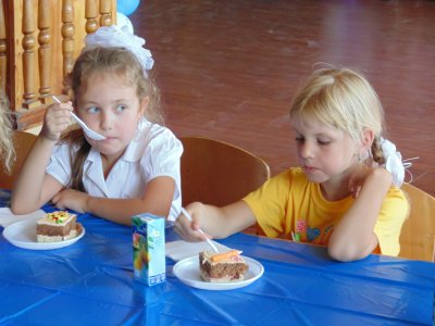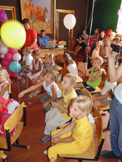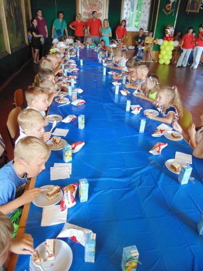 Дети сотрудников «Запорожскокса» готовы к учебному новому году. Им вчера вручили портфели. Обладатели новых полезных ранцев – тридцать пять будущих школьников. Всех собрали в гостином зале, и, перед раздачей подарков, усадили за столики, чтобы угостить сладостями. Каждый получил фруктовый сок и пирожное, а потом еще и мороженное – еще бы, в такую жару это самое лучшее.